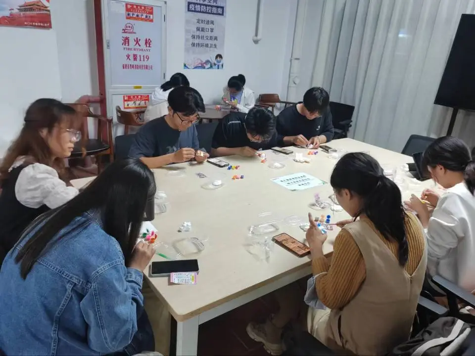 涂色是一种放松和表达自我的绝佳方式,活动过程中,同学们拿起手中的画笔,蘸起颜料,在自己喜欢的石膏娃娃上涂上热爱与赤诚。同学们或沉浸在画笔与石膏娃娃的色彩交锋中,或与同伴进行“艺术较量”,不亦乐乎。涂色活动既鼓励创造和艺术表达,又为宿舍园区同学提供一个联系互动的机会。