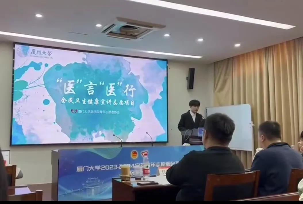 3月30日,2023-2024学年厦门大学志愿服务项目大赛在厦门大学思明校区顺利举办。由医学院团委指导的“医”言“医”行——全民卫生健康宣讲志愿项目荣获本次大赛银奖。