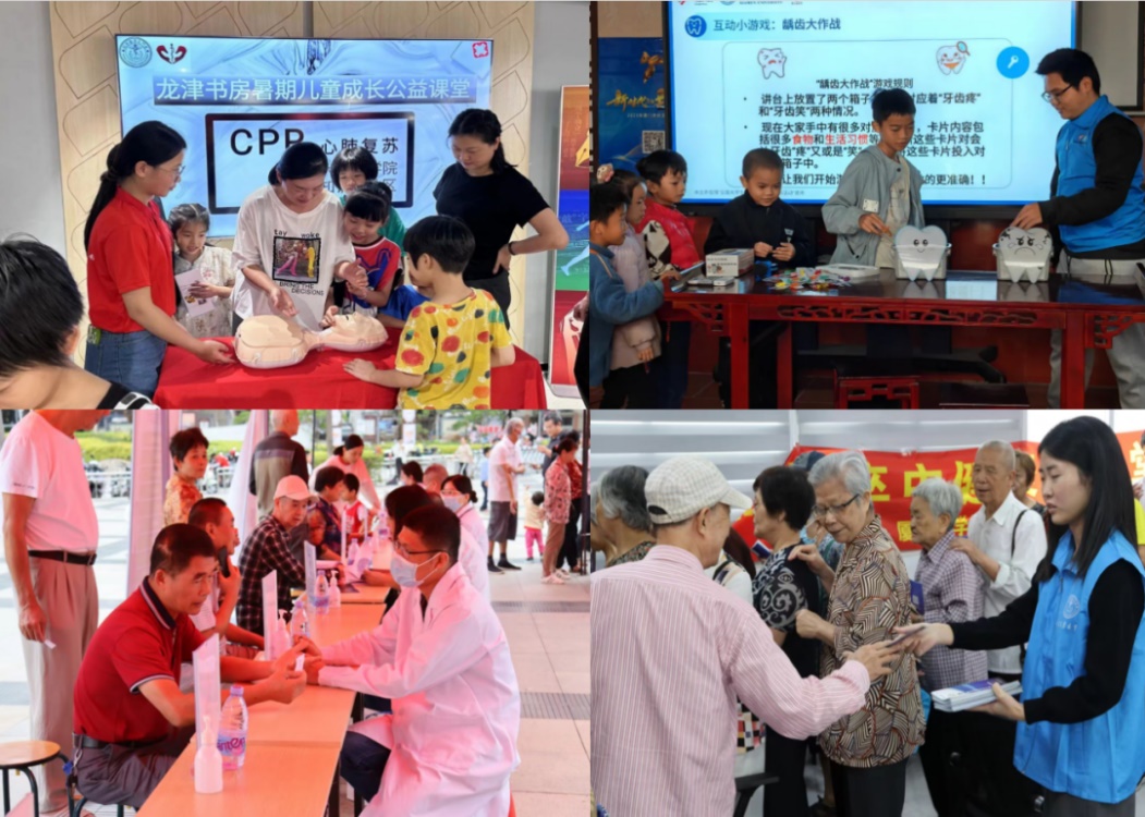 “医”言“医”行——全民卫生健康宣讲志愿项目由2020级本科生吕欣静、2021级本科生杨棋翔、2022级本科生马加良、2022级本科生蔡心玥、2022级本科生程晓磊等同学作为主要负责人,医学院团委许温洁老师担任指导老师。项目采取“讲防结合”特色化模式,通过“科普线+预防线”双线结合的形式开展,覆盖人民健康全生命周期,分为“晓露”儿童关注计划、“琢玉”青年培训计划、“引航”中年宣讲计划、“扶松”老年陪伴计划。卫生宣讲科普包含爱眼护齿、急救知识宣讲、禁毒教育、卒中预防等内容;预防内容包含视力筛检、中西医结合特色义诊以及老年急救卒中地图漫游等。项目还创新宣讲方式,涵盖菜单式宣讲、家庭结构式宣讲、在地宣讲员的培养等,旨在动员全社会参与,真正做到为人民健康保驾护航。在比赛中,该项目凭借扎实的活动开展,专业的科普服务模式和新颖的讲防结合服务获得了评委的好评,荣获本次大赛银奖。
