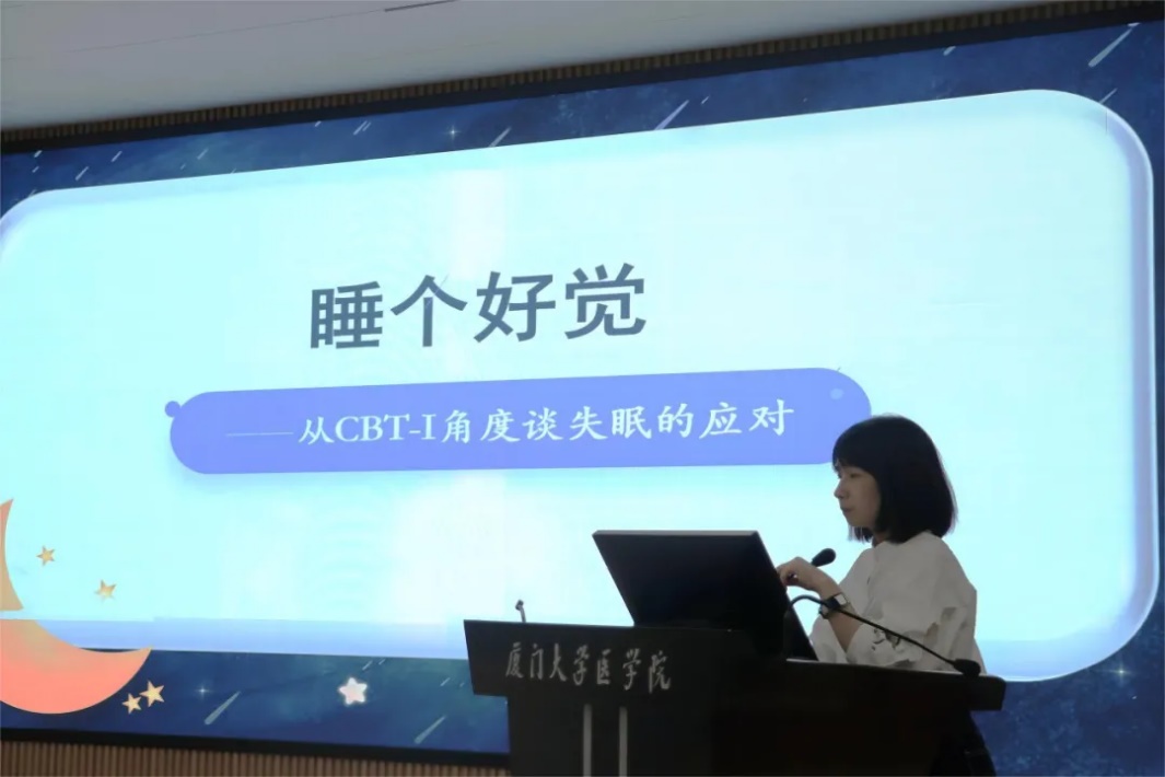最后,姚莹颖从失眠认知行为疗法(CBT-I)角度向同学们介绍了应对失眠的具体方法,包括睡眠知识健康教育、睡眠卫生、刺激控制疗法、睡眠限制疗法、认知治疗以及放松训练六个方面。