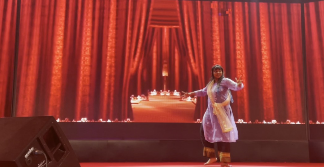 随后,来自2018级本科生Lakshmi Aishwarya带来了令人惊叹的融合舞蹈,结合了三种不同的舞蹈风格,包括巴拉坎纳提安舞(Bharathanatyam)、宝莱坞舞和泰米尔库苏舞。2015级的Aks Vashisht和2020级的Pratham Malik以在吉他上演奏的原声混音呈现了印度音乐的精髓。来自2020级的Niranjani和Shruthi带来了另一场迷人的舞蹈,她们在印度多语种音乐中尽情跳舞,跳出自由宝莱坞风格、古吉拉特邦和特伦甘纳邦民间风情。