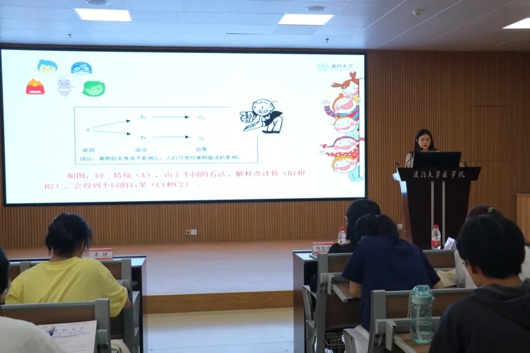 2024年3月25日下午,医学院青囊解忧心理大讲堂第九期《认识“情绪”,拒绝“焦虑”》在爱礼楼104报告厅开讲。本次讲堂由厦门大学心理咨询与教育中心专职教师李婷主讲,医学院辅导员陈陈瑾主持,200余名学生参与本次活动。