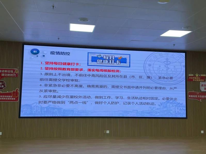 大会涵盖疫情防控、宿舍安全、其他安全、考试诚信、学业规划五个主题。会议伊始,许洋强调每日健康打卡是疫情防控的重要要求,也是保障大家安全健康的重要基础,督促同学们每日按时健康打卡。接着许洋强调了核酸检测的必要性,提醒大家非必要不离厦,离厦须提前报备并有必要理由,嘱咐大家尽量减少在厦校外活动,做到工作、学习、生活轨迹相对固定,同时对线上未返校的同学强调未经同意,不得提前返校。