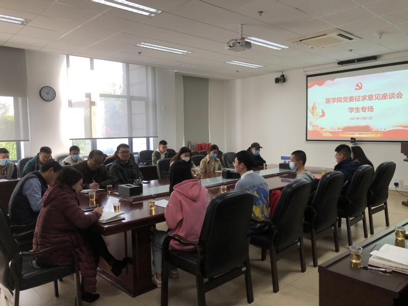 根据《厦门大学医学院领导班子党史学习教育专题民主生活会方案》安排,为认真开好中层以上党员领导干部民主生活会,做好检视问题工作,12月31日上午,院党委在爱礼楼103召开征求意见座谈会之学生专场。医学院党委副书记何丽苹、王坤钟,全体辅导员及17名本硕博学生代表参加了本次会议。