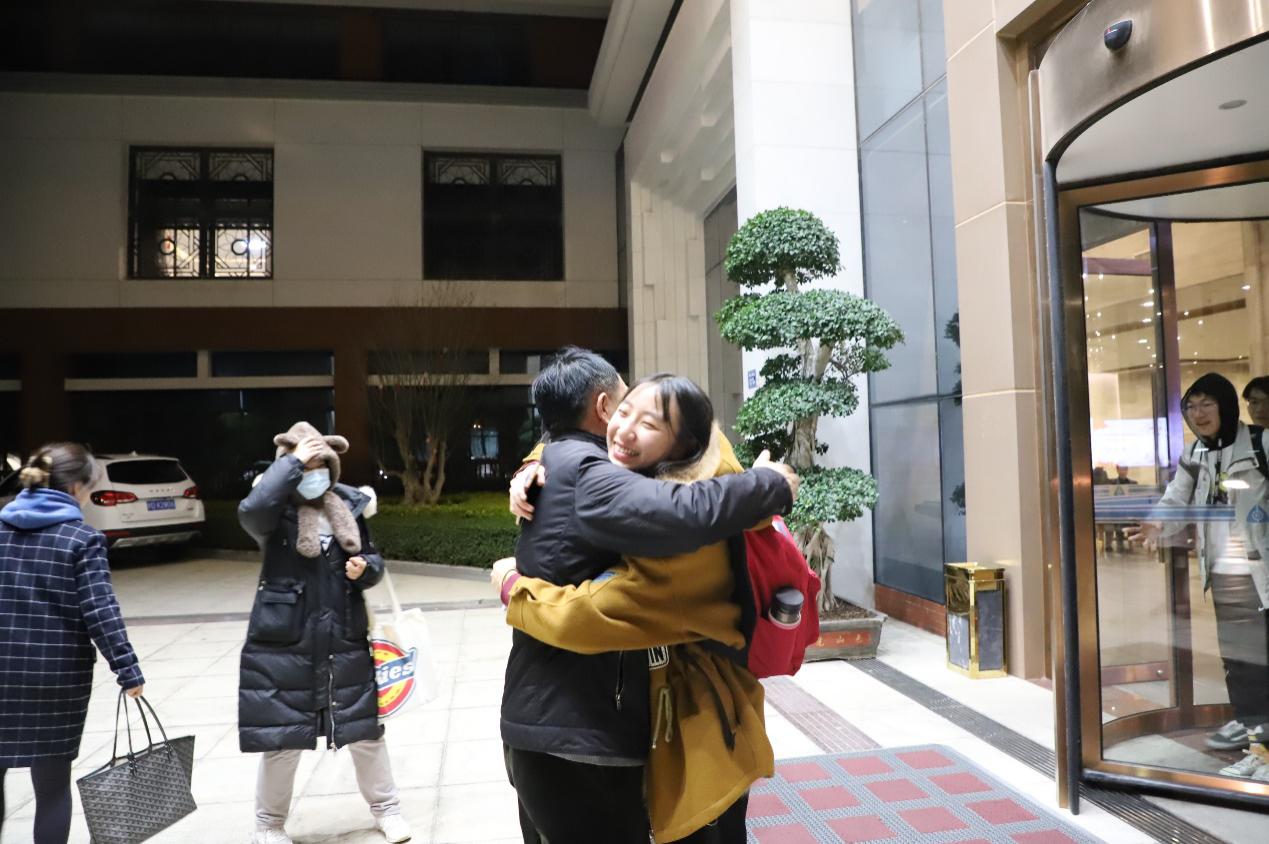 滕伯刚老师在逸夫楼下给了每位满载幸福而归的同学们一个温暖的拥抱,为学子们送去了最真挚而美好的祝福。