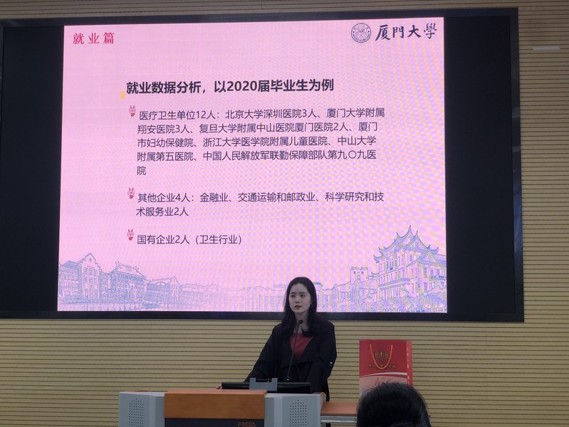 为做好2021届护理毕业生工作,让每一个护理毕业生都能全面总结自己的大学生活,认真做好职业生涯规划,为就业创业做好充分准备,11月6日中午,2017级护理班班会在厦门大学附属第一医院科教楼401召开毕业生就业指导班会,会议由2017级辅导员许温洁主持。