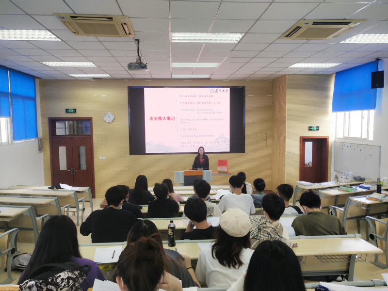 会议一开始,辅导员许老师介绍了未来一年的就业招聘,考研,毕业答辩等时间节点、往届毕业生的毕业去向和发展情况,让同学们充分了解未来发展的可能性,做好未来发展规划。接着,许老师为同学们详细讲解了《厦门大学就业暂行管理办法》,并在招聘方面为大家提供了一些建议与技巧,嘱咐同学们诚信就业,并组织同学们签署了《厦门大学学生诚信就业就业承诺书》。最后,许老师强调了实习期间的安全事项与纪律要求,确保每一位同学顺利通过实习!同时也寄去了对同学们未来前程的美好祝福!