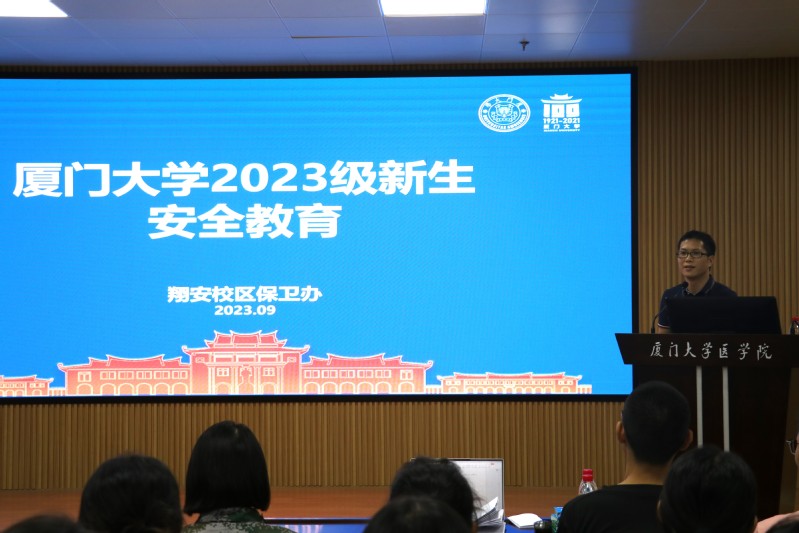 严为安全之本,松乃事故之源,每个人都是保护自身安全的第一责任人。9月7日晚,厦门大学医学院“新生适应性教育之校园安全教育”主题活动在爱礼楼104开展,旨在加强新生安全意识,提高风险防范能力。活动由翔安校区保卫办左霆华主讲、辅导员陈陈瑾主持,全体2023级本科新生参与学习。