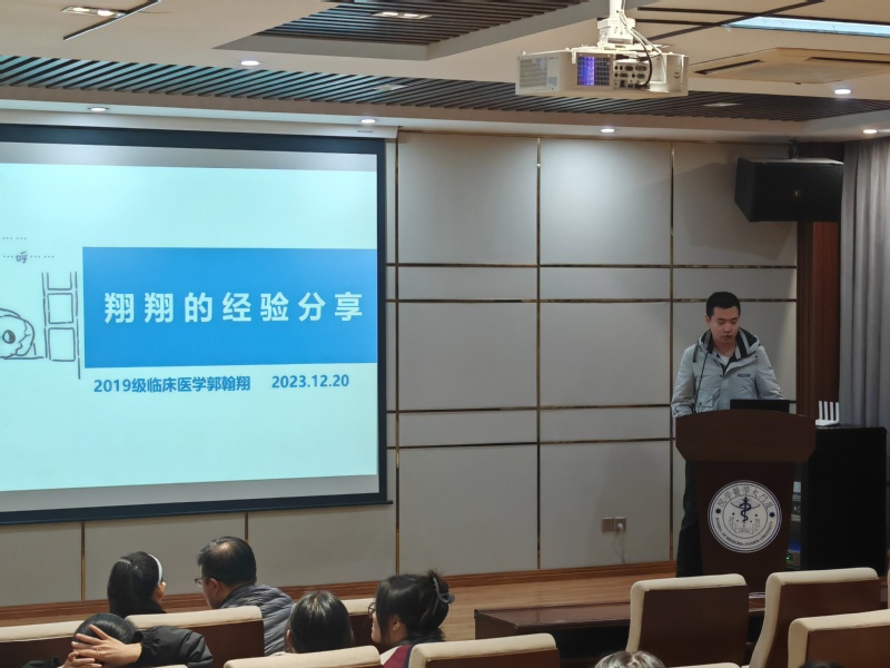 为进一步加强学风建设,培育优良学风,营造良好学习氛围,增强学生学业主动性,强化朋辈帮扶,充分发挥优秀学生的榜样示范引领作用,2023年12月20日,厦门大学医学院2023级临床医学班级在成义楼102报告厅举办朋辈学习经验分享会,活动邀请到2019级临床医学专业郭翰翔、2020级临床医学专业毋思思、2021级临床医学专业杨棋翔分享大学学业规划和学习经验。本次分享会由2023级临床医学三班主办,班主任闫国良参加。活动由班级团支书陈思晴主持。