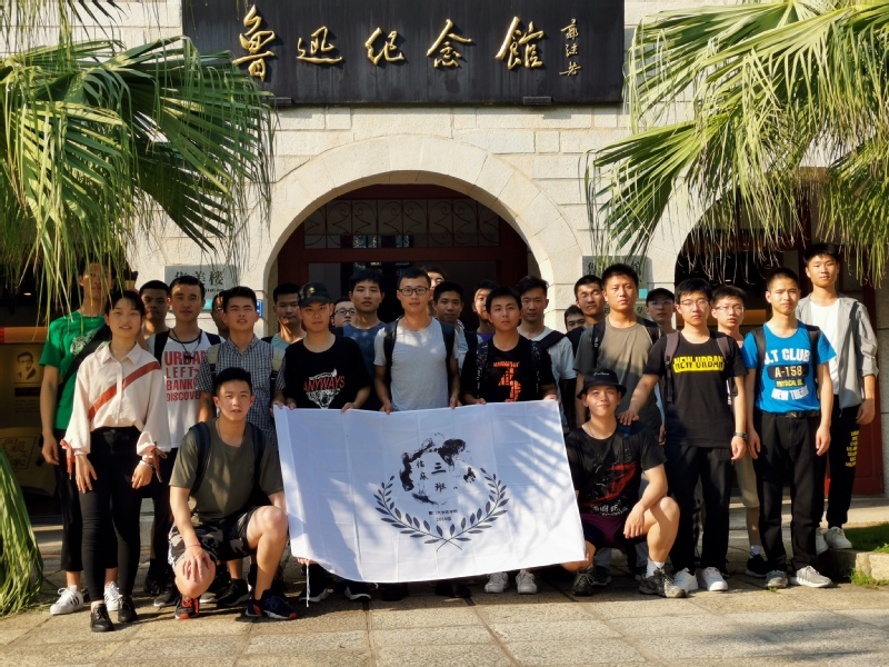 最后,结束参观时,在鲁迅纪念馆门前,同学们自豪地举起旗帜,继往开来,勇敢地迎接新时代,接受新挑战。
